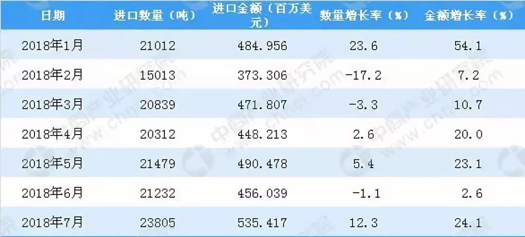 2018年1-7月中国电线和电缆进口数量及金额增长率情况入下图所示: